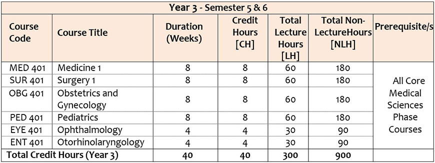 - Phase of‘Core Medical Sciences’ (Years 1 & 2)